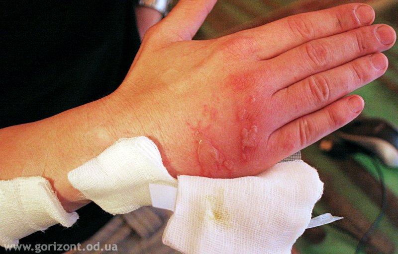 - Если касание вы не заметили, а обнаружили на утро на коже пузыри – лечите их как ожог второй степени. Это означает, что обожжённую кожу нужно обработать пантенолом (или пантестином) и максимально долго не разрывать пузыри с жидкостью – под ними кожа постепенно регенерирует. Если пузыри лопаются – рану нужно ежедневно обрабатывать раствором перекиси водорода и накладывать защитную повязку – для этого на ожог (или на рану) накладывается повязка из 6-7 слоёв бинта, под которую можно положить немного пантестина, или любой гель с антибиотиком, например, левомеколь.